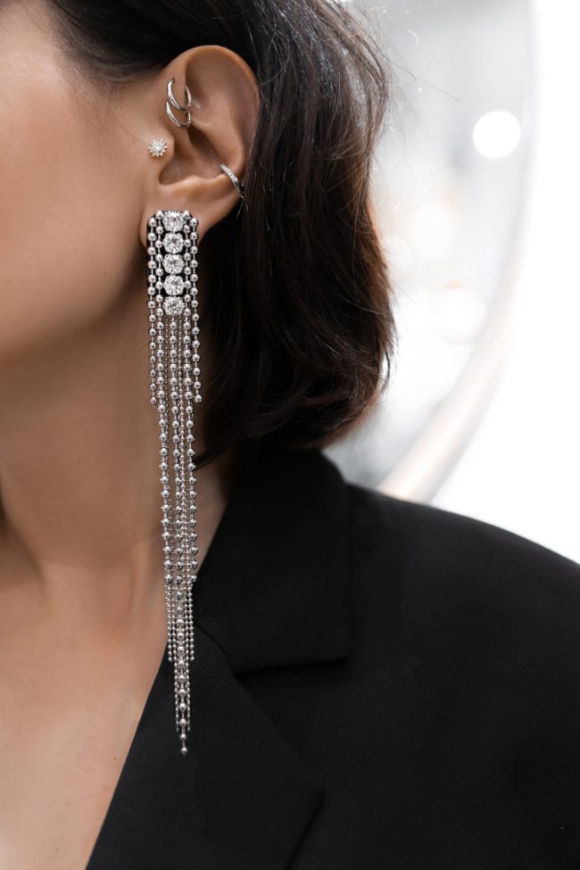 Серьги OXYLOVE Geom – один из тех аксессуаров, которые автоматически придают образу wow-эффект. Особенно в асимметричном исполнении: одна серьга собрана из серебристых ниспадающих цепей и кристаллов, вторая более лаконичная – это швенза-звезда с двумя подвесками.
