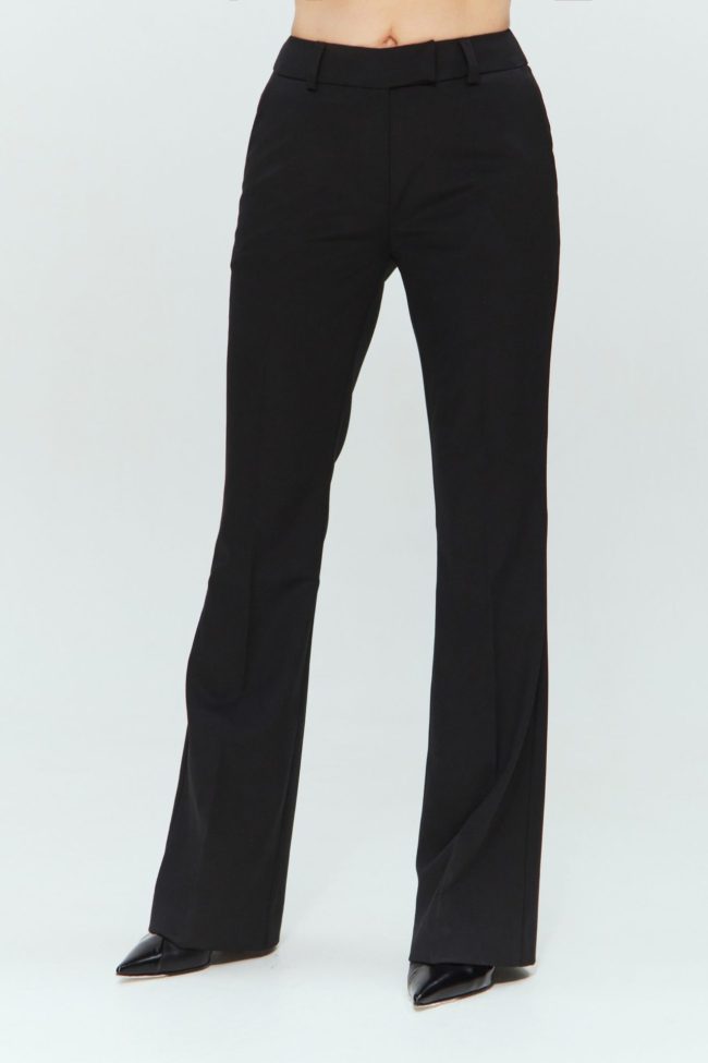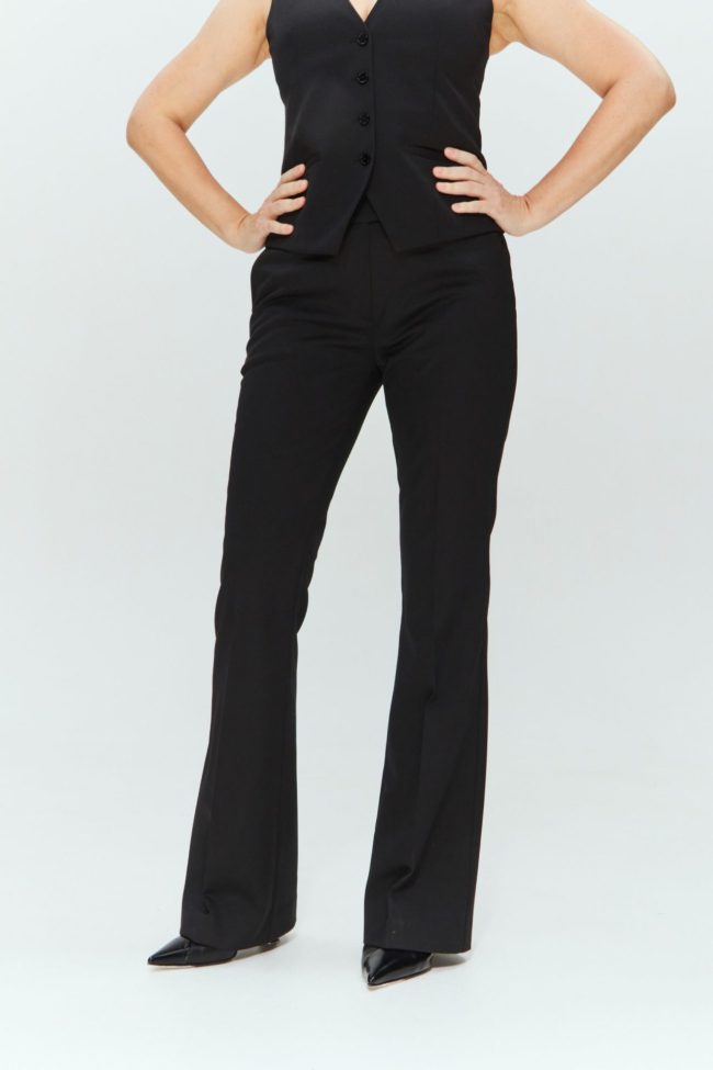 В этом сезоне мы называем черный цвет универсальным и используем его как основной в коллекции VERESK label. В этом оттенке выполнили брюки клеш с классической посадкой. Модель сшили из шерсти, которая формирует мягкий силуэт и при этом хорошо держит четкость стрелок. Берем вещь за основу сдержанного повседневного образа.