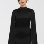 Высокий воротник, чистые линии и эффектные рукава-кейпы создают современный и уверенный образ.