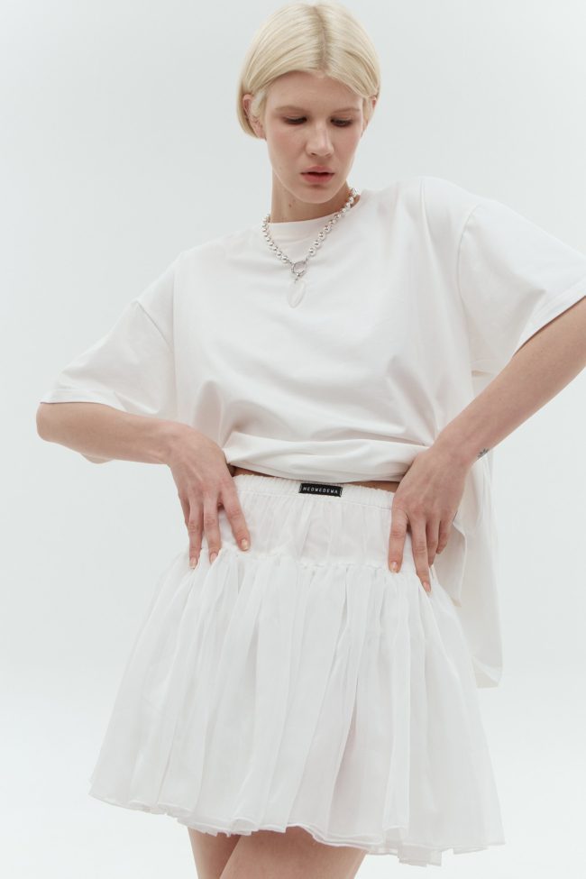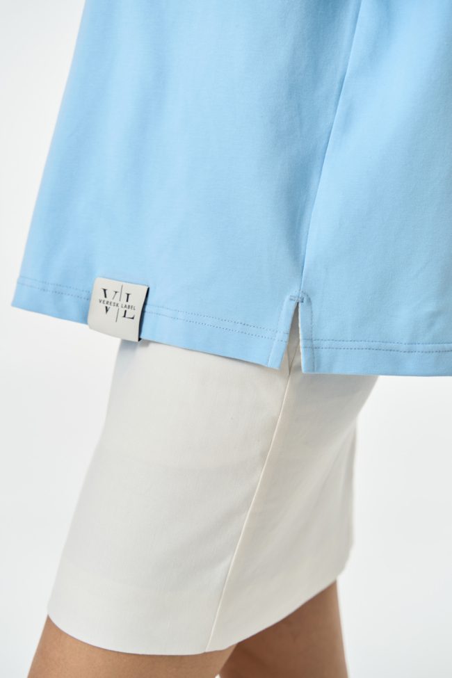 Модель выполнена из мягкого хлопкового джерси, обработанного в технике мерсеризации, поэтому она приятно ощущается на коже, не пилингуется и не деформируется даже после многократных стирок.