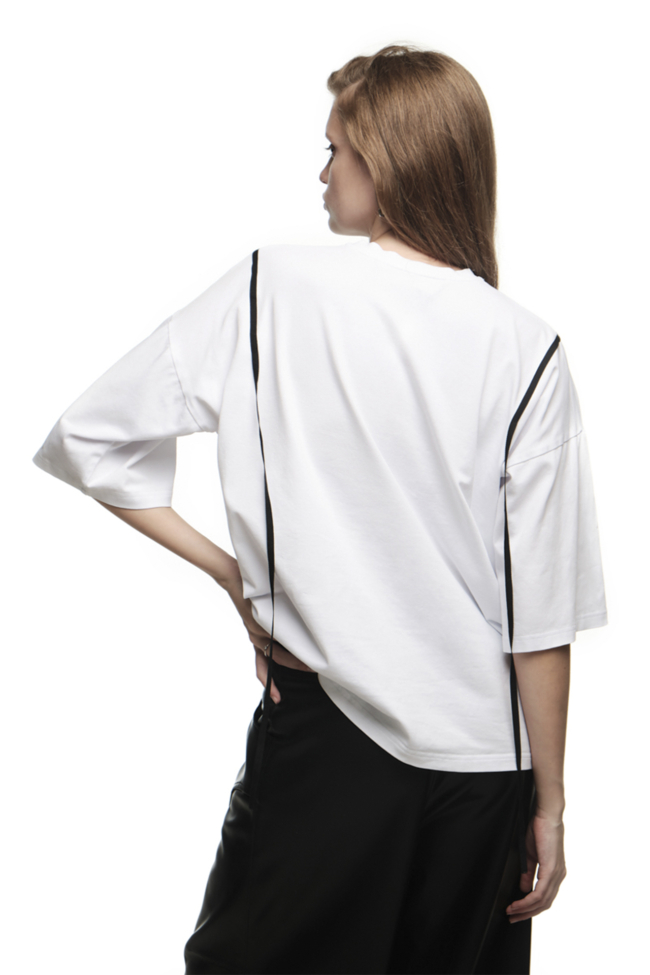 Нашитые ленты повторяют идеальные формы и развиваются в движении. Отличается от базовой YB футболки объёмом, эта для любителей oversize. Надевайте ее, когда хотите чувствовать себя комфортно, стильно и в меру секси.