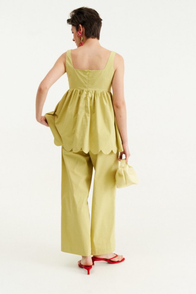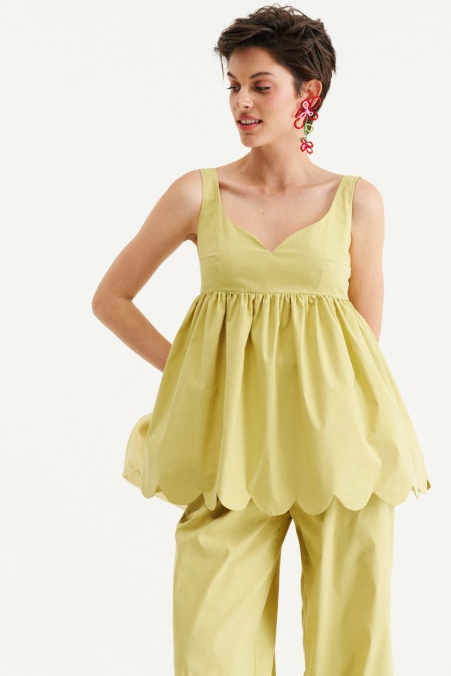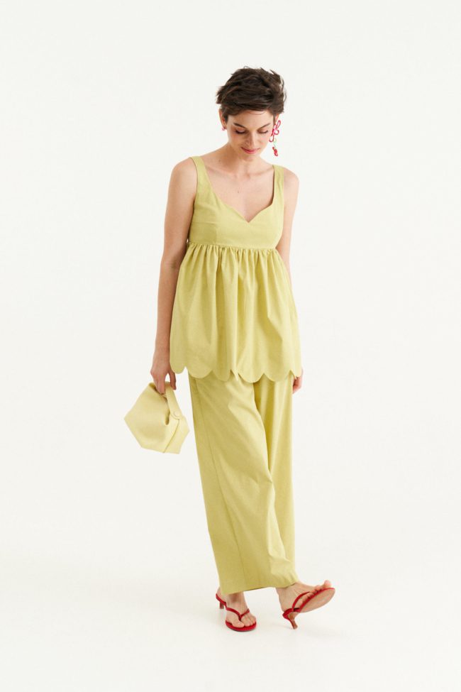 Топ с подрезом под грудью, застежкой на потайную молнию в среднем шве спинки. Лиф переда с вытачками. Низ блузы на подкладке с фигурным краем.