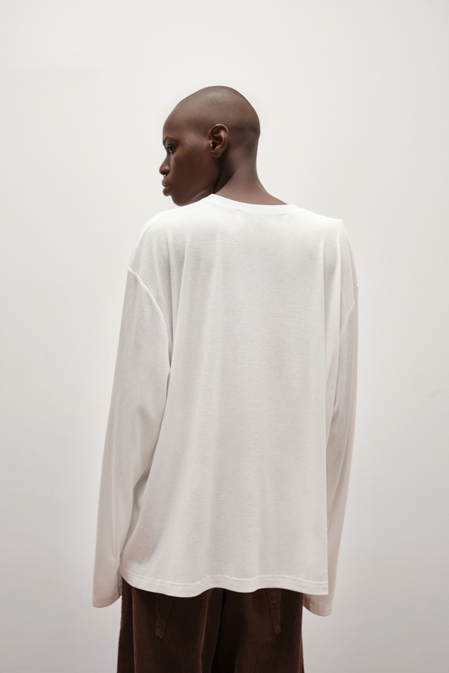 Модель Easy-Going от Yana Besfamilnaya — это удачное сочетание универсальности и дизайнерской идеи. Она создаёт базу для множества образов, но при этом не теряет индивидуальность. В коллекции VERESK Studio лонгслив представлен как вещь, которая объединяет эстетику бренда с нашим вниманием к утончённым деталям и качеству.