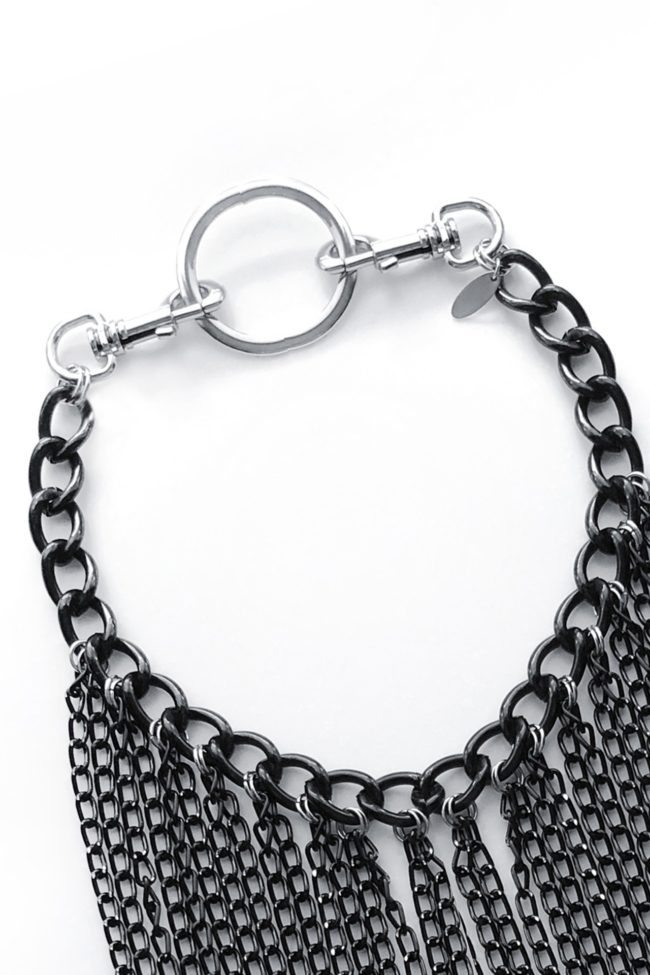 Акцентное колье ручной работы OXYLOVE Black с каскадом черных цепей разной длины. Сразу оказывается в центре внимания, поэтому дополнять им можно даже самый простой образ. Фиксируется на карабин серебристого цвета.