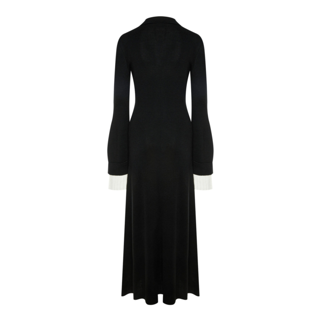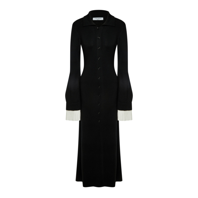 Платье SAINT B чёрного цвета — утончённый элемент гардероба с мягкой вязкой и контрастными манжетами. Возможность носить как платье или кардиган делает его универсальным вариантом. Размер ONE SIZE подходит разным фигурам, а лаконичный чёрный цвет легко комбинируется с любыми аксессуарами.