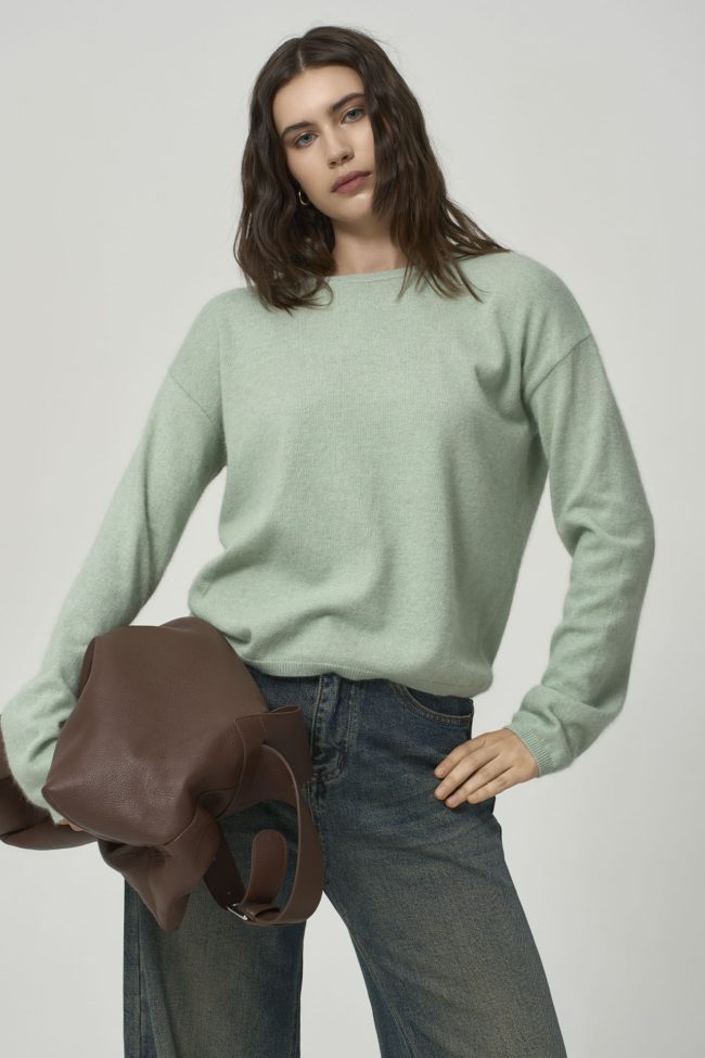 Джемпер ANNBRANND из кашемира и шёлка — базовая премиальная модель, созданная из мягкого природного состава: кашемир даёт тепло и лёгкость, а шёлк — деликатный блеск и пластичность. Джемпер представлен сразу в пяти оттенках — черничный, мятный, серый, горький шоколад и коричневый, что делает модель универсальной для разных типов внешности и гардеробов.