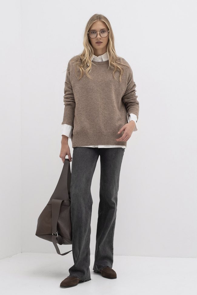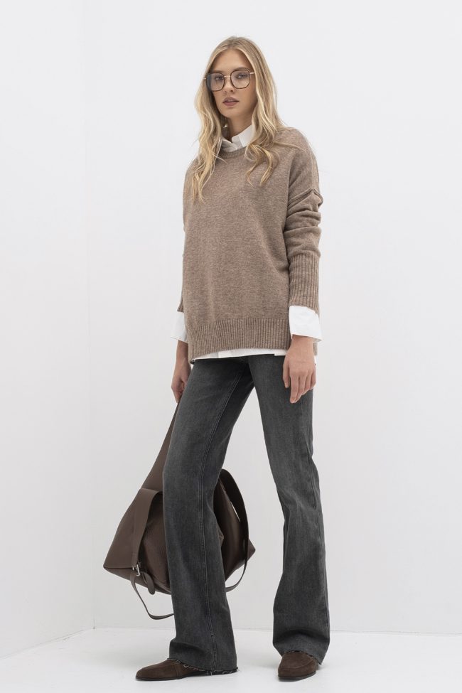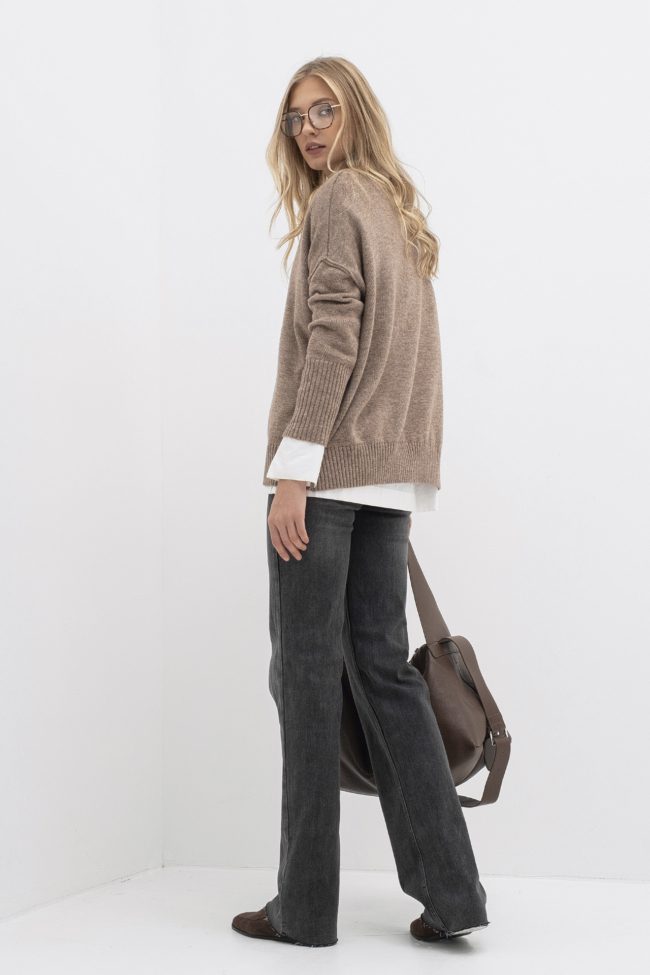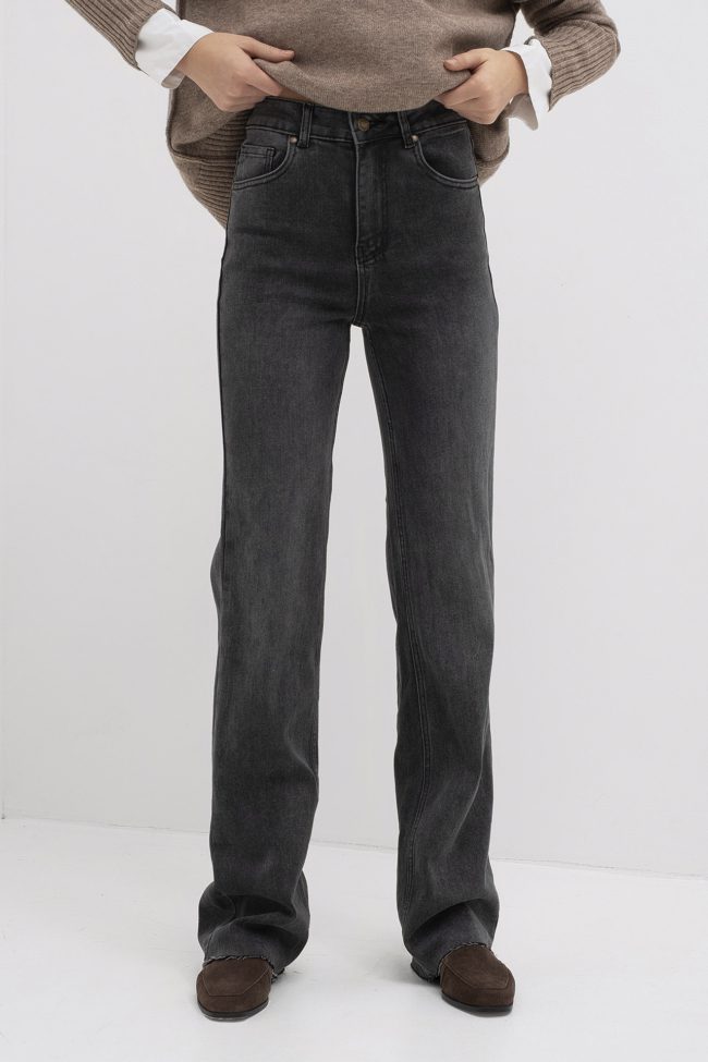 Высокая посадка и прямой крой подчёркивают фигуру, визуально удлиняя силуэт и создавая эффект “выше ростом”. Необработанный низ делает образ чуть расслабленным и актуальным для городского стиля. annbrannd.com