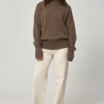 Модель отличается комфортным объёмом, спущенной линией плеч, длинными манжетами и плотной резинкой по низу. Высокая горловина создаёт ощущение тепла и защищённости, а структура кашемира делает свитер мягким, тёплым и долговечным.