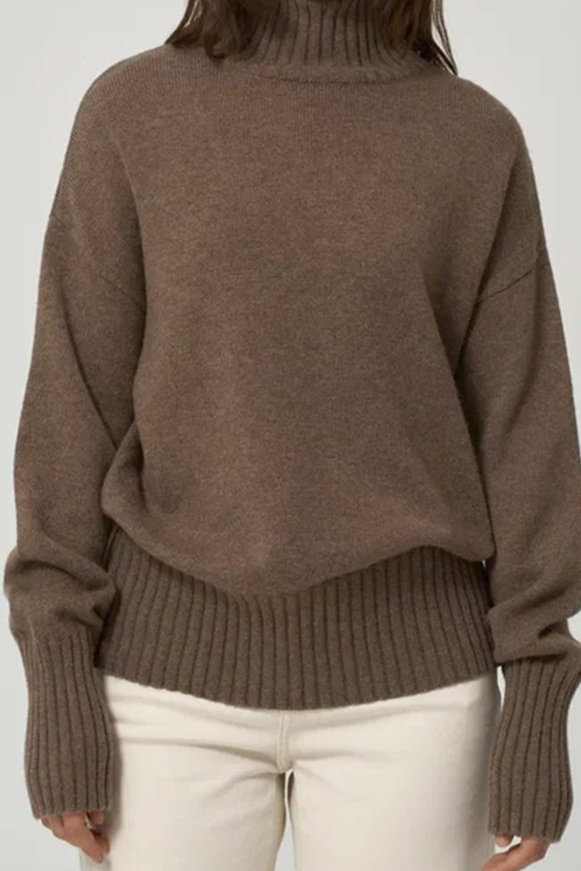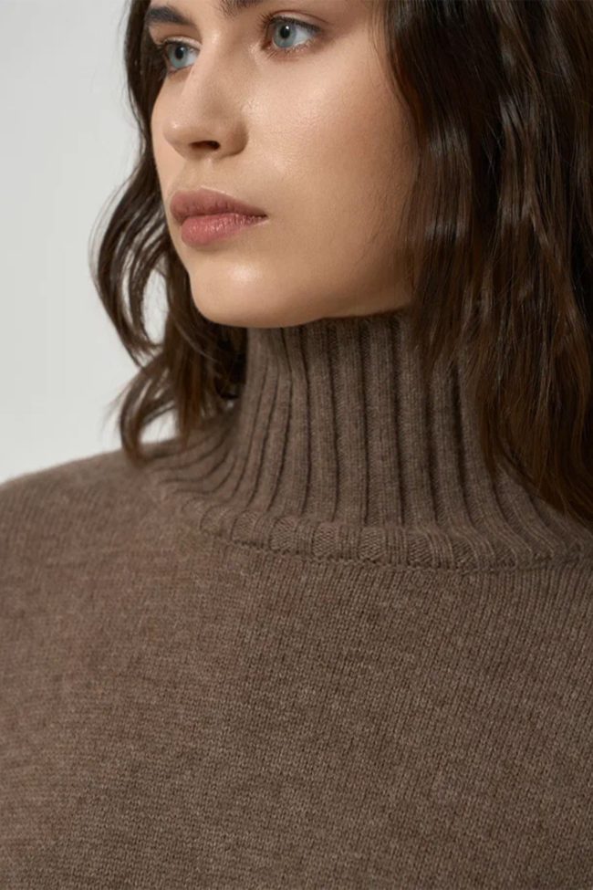 Свитер ANNBRANND из кашемира — премиальная модель, выполненная из 70 % кашемира и доступная в двух оттенках: кофейный (мокко) и серый-графит.