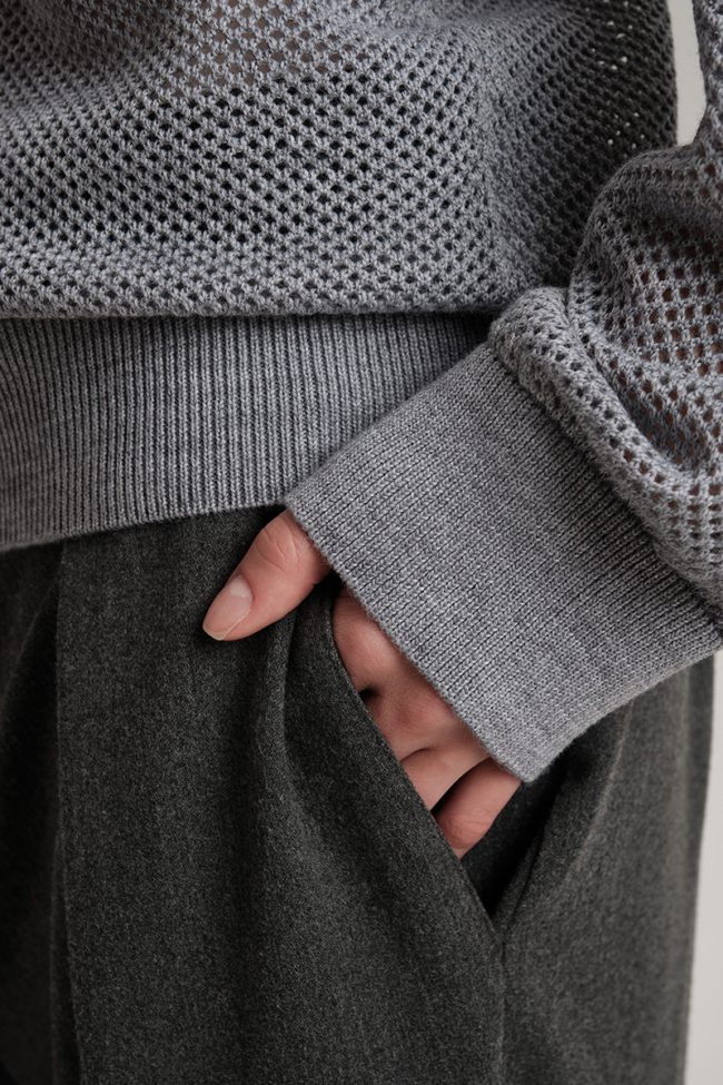 Свитер работает как самостоятельная вещь или как нижний слой под пиджак, кардиган, пальто. Серый оттенок универсален и гармонирует с денимом, графитом, белым и чёрным. Чёрный — строгий, выразительный, подчёркивает линию плеч и визуально вытягивает силуэт.