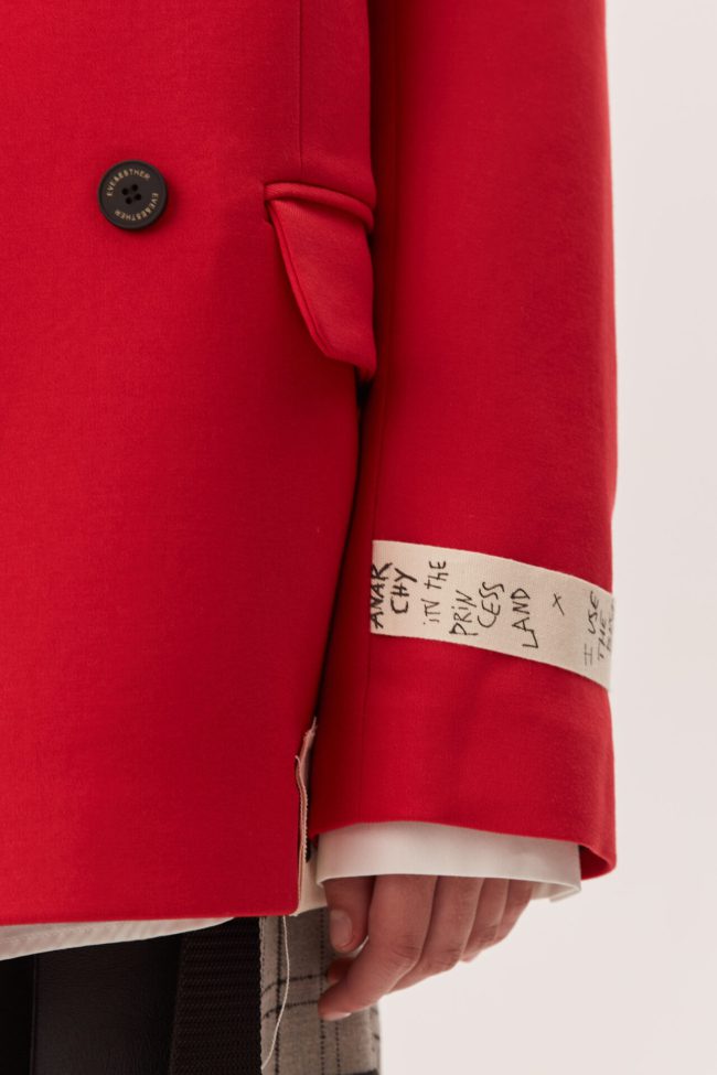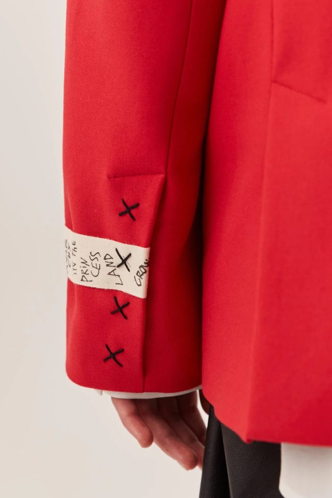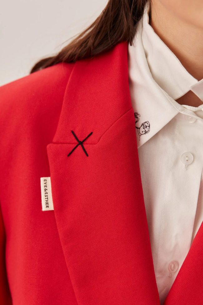 Бренд Eve&Esther уделяет внимание деталям: качественная ткань, чёткие формы, посадка, ориентированная на городскую женщину, искренне и уверенно. Жакет «GOD SAVE THE PRINCESS» красного цвета — это выбор тех, кто не боится быть заметным и хочет отражать свою индивидуальность через одежду.