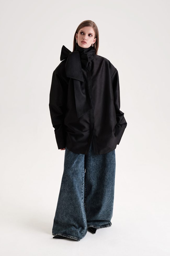 Рубашка с бантом чёрного цвета — Yana Besfamilnaya | VERESK