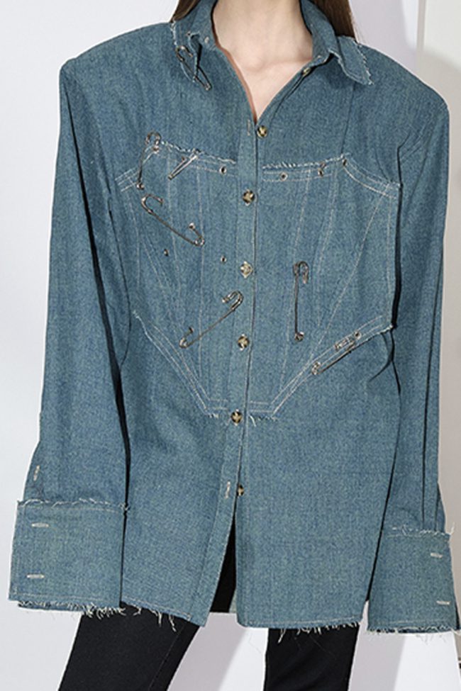 Рубашка Yana Besfamilnaya джинсовая с корсетом синего цвета