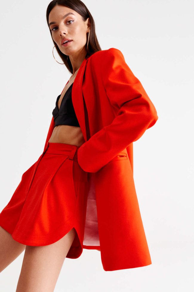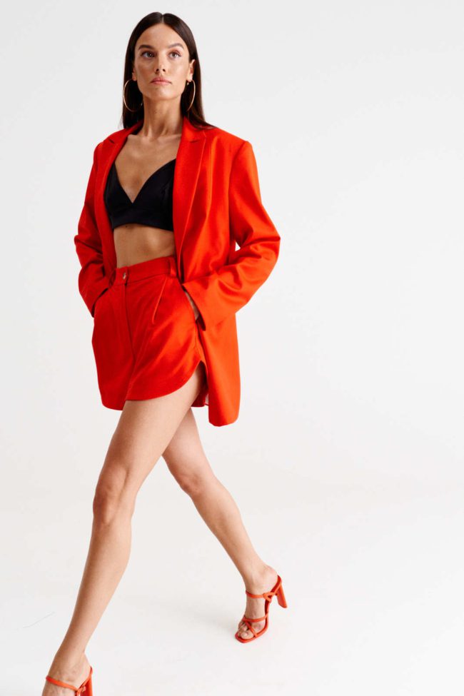 Шорты на завышенной талии ярко-красного цвета с трендовыми вырезами по бокам. Сочетайте шорты со спортивным верхом, чтобы создавать образы в стиле спорт-шик, и с рубашками, топами для создания повседневного образа. Стильный образ для лета в городе или вечерних выходов можно создать, сочетая с пиджаком из той же коллекции бренда MUA.