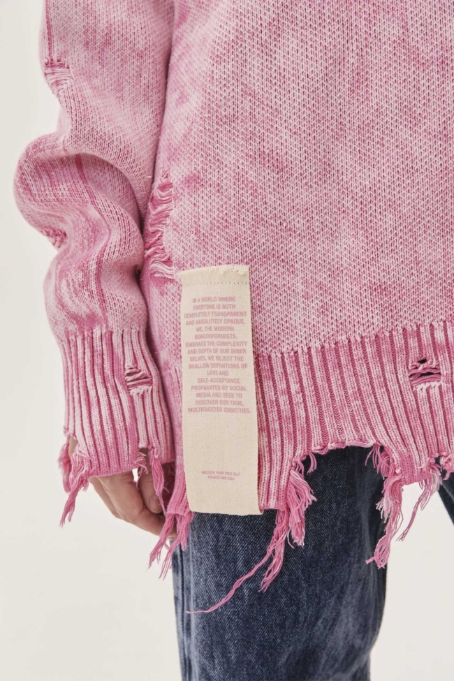 Объёмный свитер FINDING TRUE BEAUTY розового цвета — яркий и стильный элемент гардероба. Модель с опущенными петлями и необработанным краем, окрашенная вручную в технике acid wash, создаёт уникальный эффект выцветания. Свободный силуэт и текстильные принты из коллекции Be Authentic подчёркивают индивидуальность. Отличный выбор как для повседневных образов, так и для многослойного стиля.