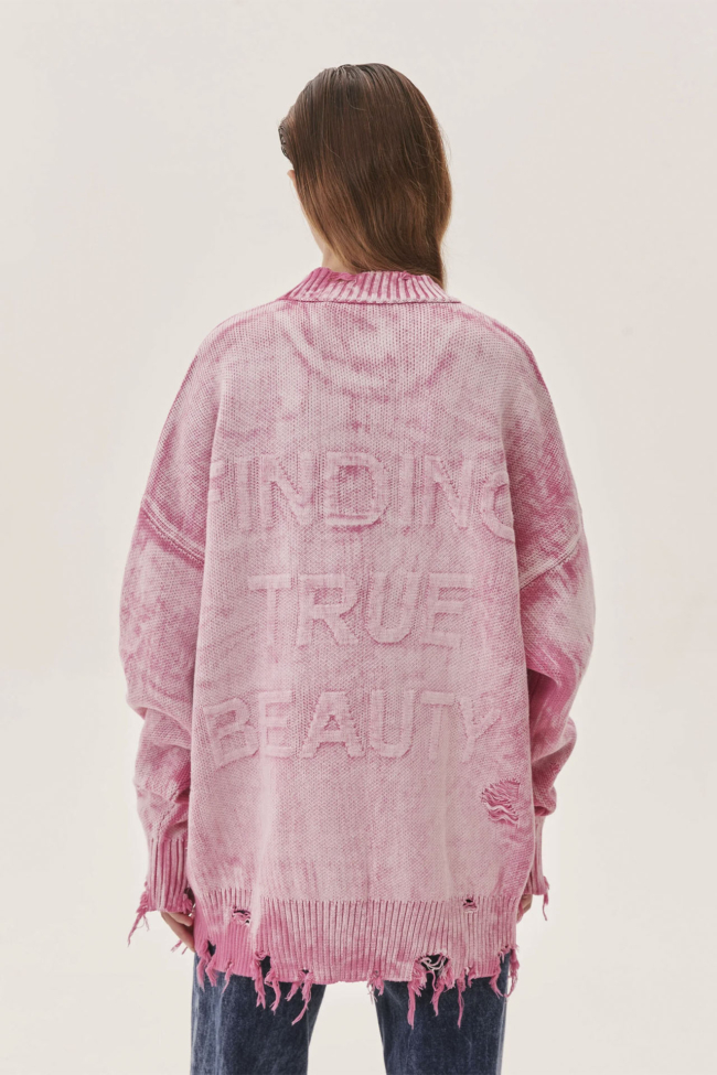 Свитер FINDING TRUE BEAUTY розового цвета — яркий и индивидуальный элемент гардероба от бренда Eve&Esther, представленный в VERESK studio, который сочетает комфорт, арт-эстетику и визуальный характер.