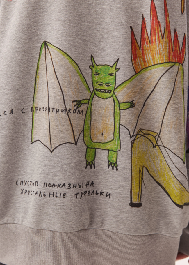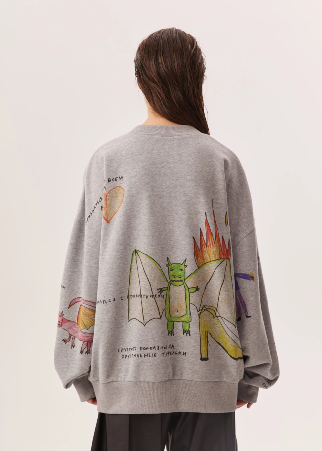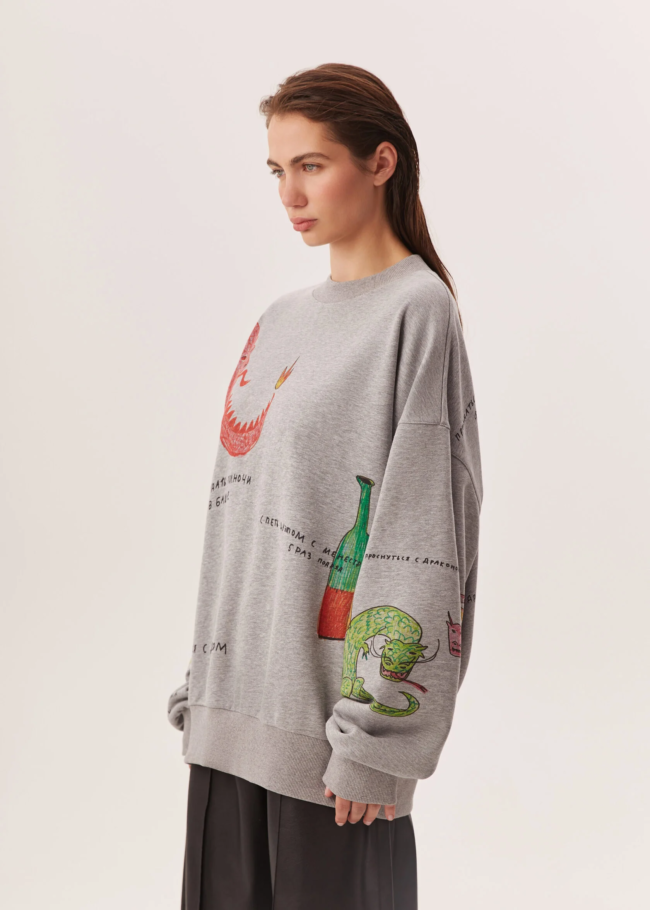 Свитшот Eve&Esther «Шальная Принцесса 2.0» серого цвета — символ уверенности и характера. Модель из коллекции Magic Flowers объединяет лаконичный дизайн, свободный силуэт и узнаваемый авторский принт. Бренд Eve&Esther традиционно сочетает иронию и стиль, превращая повседневную одежду в манифест личности.