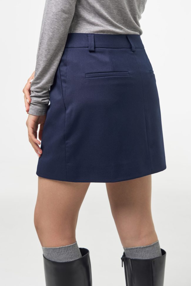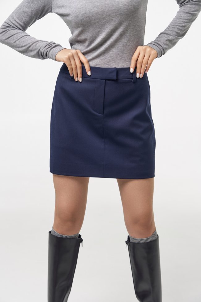 Мини юбку из осенней коллекции V|L скроили по лекалам классических брюк, сохранив пояс с фиксацией на крючки, боковые карманы сбоку и планки карманов сзади. Для пошива использовали премиальную ткань, в составе которой шерсть. Советуем сочетать с парным пиджаком из шерсти V|L.