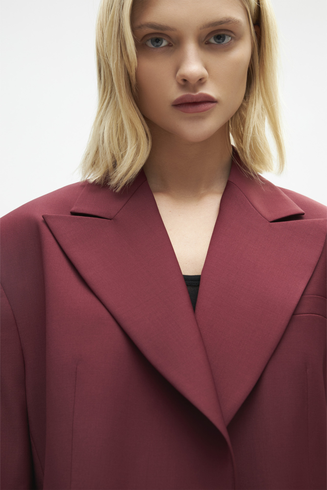 Однобортный жакет оверсайз винного цвета Papaya — это смелая базовая вещь, которая способна преобразить любой образ. В VERESK studio такая модель действует как ключевой элемент, который сочетает в себе лёгкую строгость и художественную выразительность оттенка.