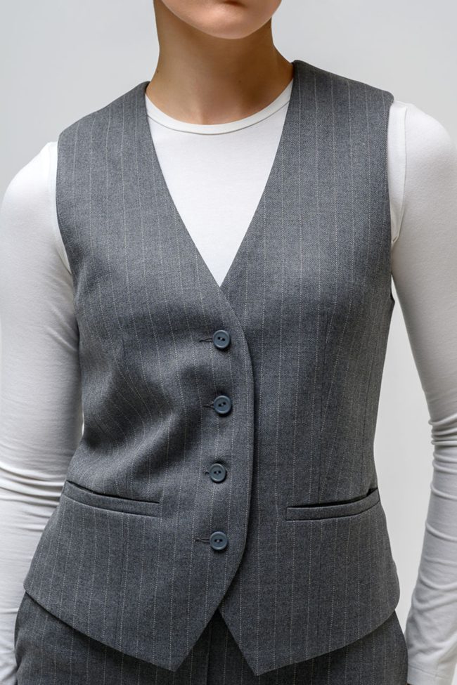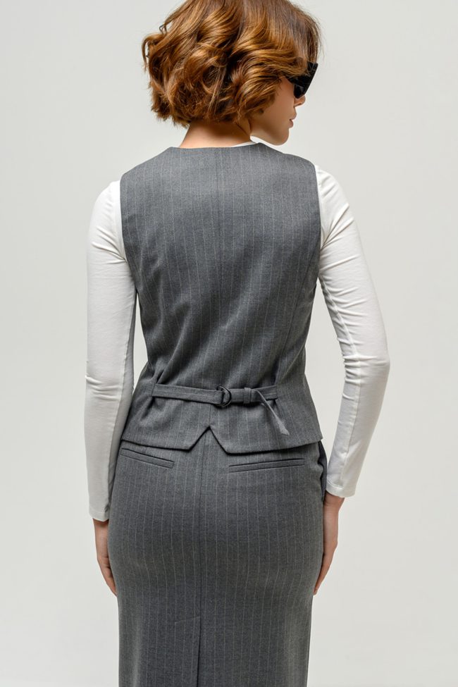 Жилет с V-образным вырезом из премиальной линии нашего собственного бренда VERESK label – V|L. Продуманные вытачки обеспечивают идеальную посадку модели по фигуре, а регулируемый ремешок сзади делает ее более точной и комфортной. Для пошива модели использовали плотную ткань, которая хорошо держит форму и не мнется. Предлагаем сочетать изделие с юбкой и пиджаком в тон.